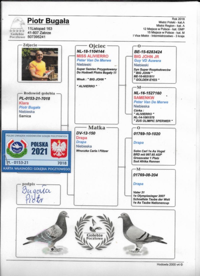 PL-0153-21-7018 - Wnuk "BIG JOHN" - Peter Van De Merwe x Wnuczka "Carl" i "Flitzer" A. Drapa